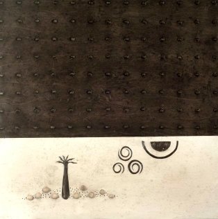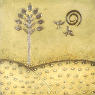 pewter and acrylic on board