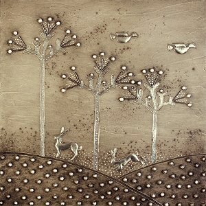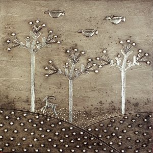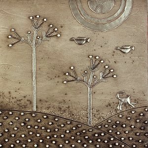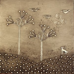 pewter and acrylic on board